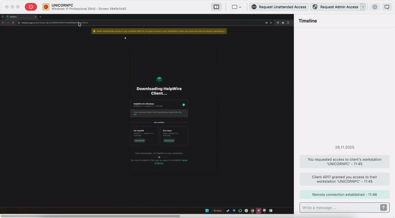 HelpWire bietet schnelle, sichere Remote-Desktop-Unterstützung für Windows, macOS und Linux (ideal für IT-Hilfe und Support auf Abruf).