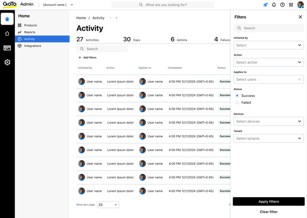 - • Audit logs & activity tracking: Detailed logs track user activity and help with troubleshooting, as well as with compliance and reviews.